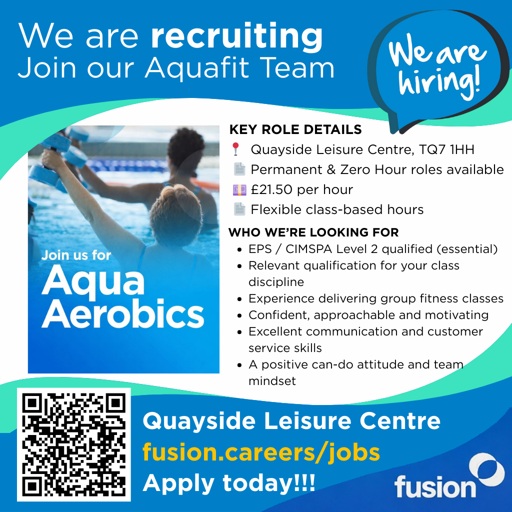 I’ve also attached information on half-term activities and current job and apprenticeship opportunities taking place across the Fusion Leisure Centres. The posters reference Quayside, but opportunities are available across the centres, if you would like me to send you posters for any of the centres and opportunities, please contact me and I will send you them directly.